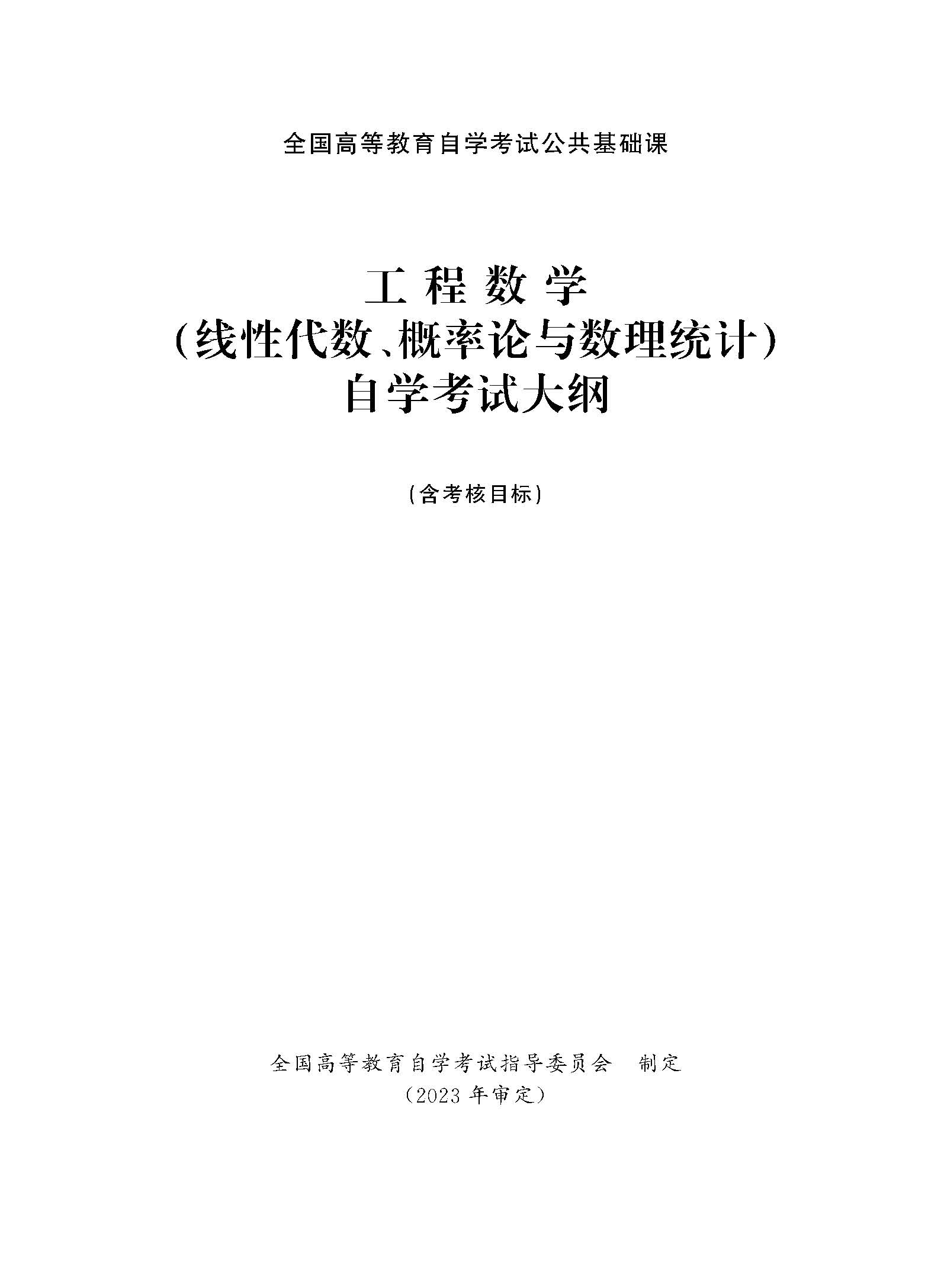最新2024年全国高等教育自学考试公共基础课工程数学自学考试大纲