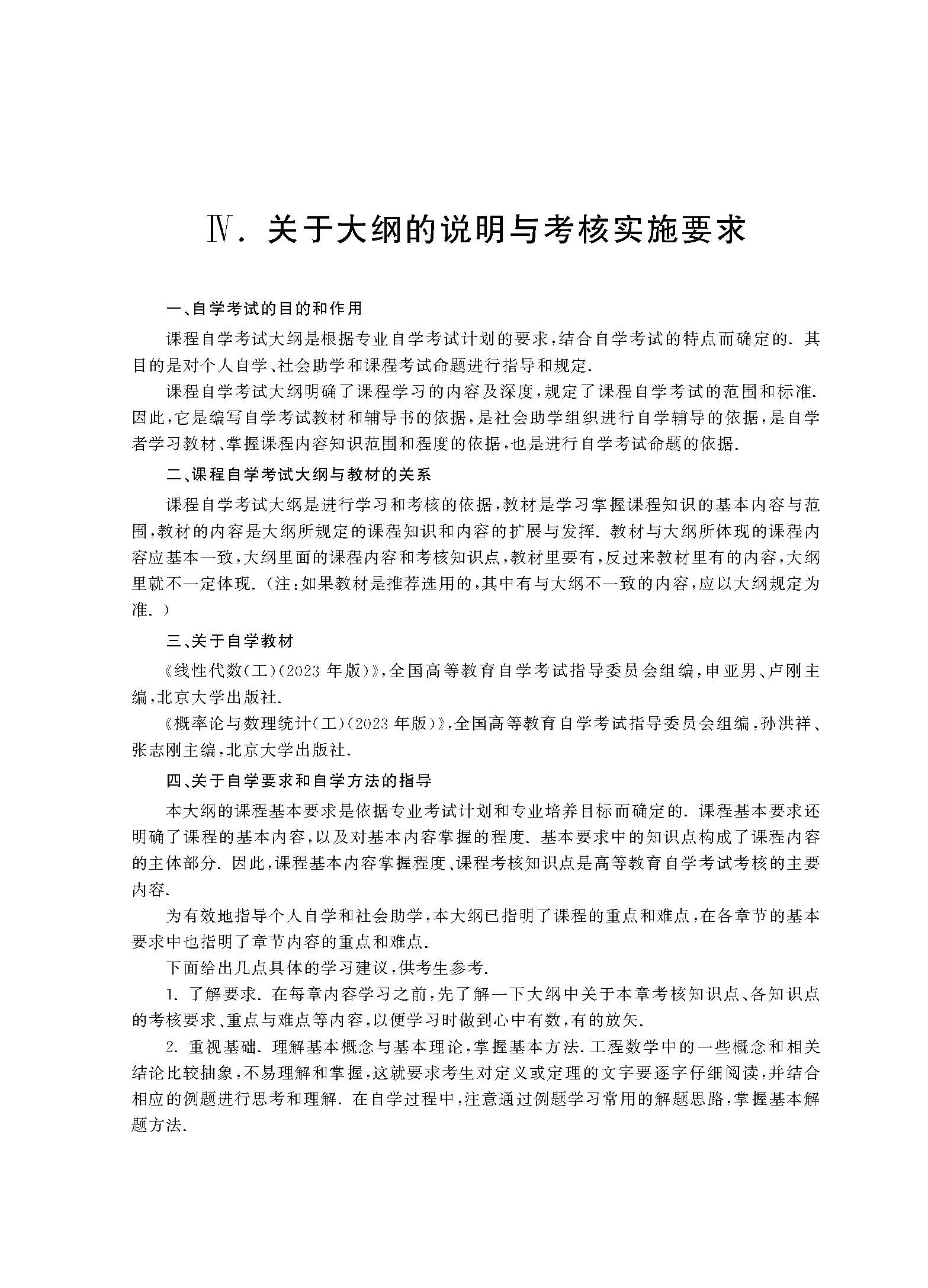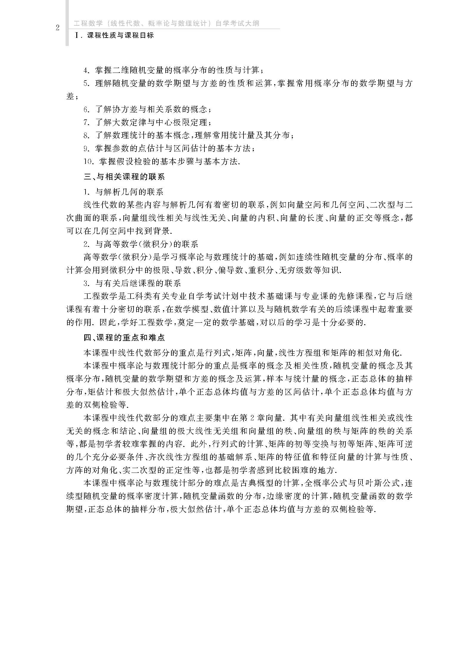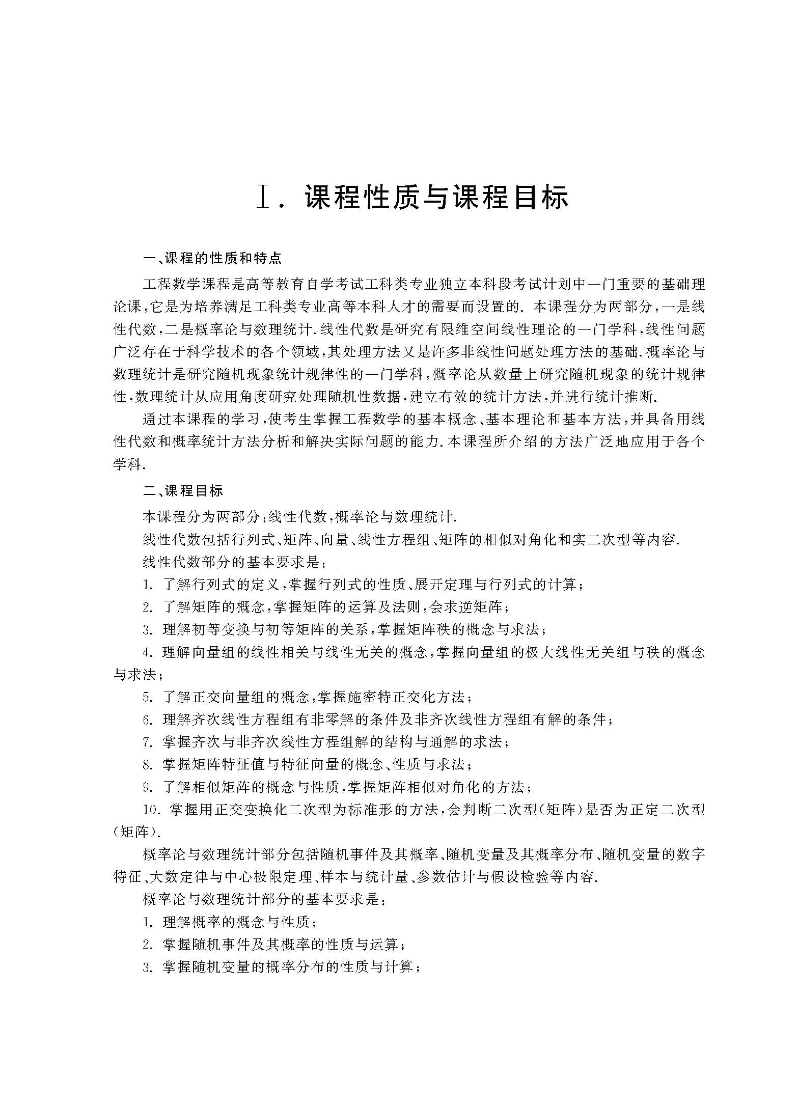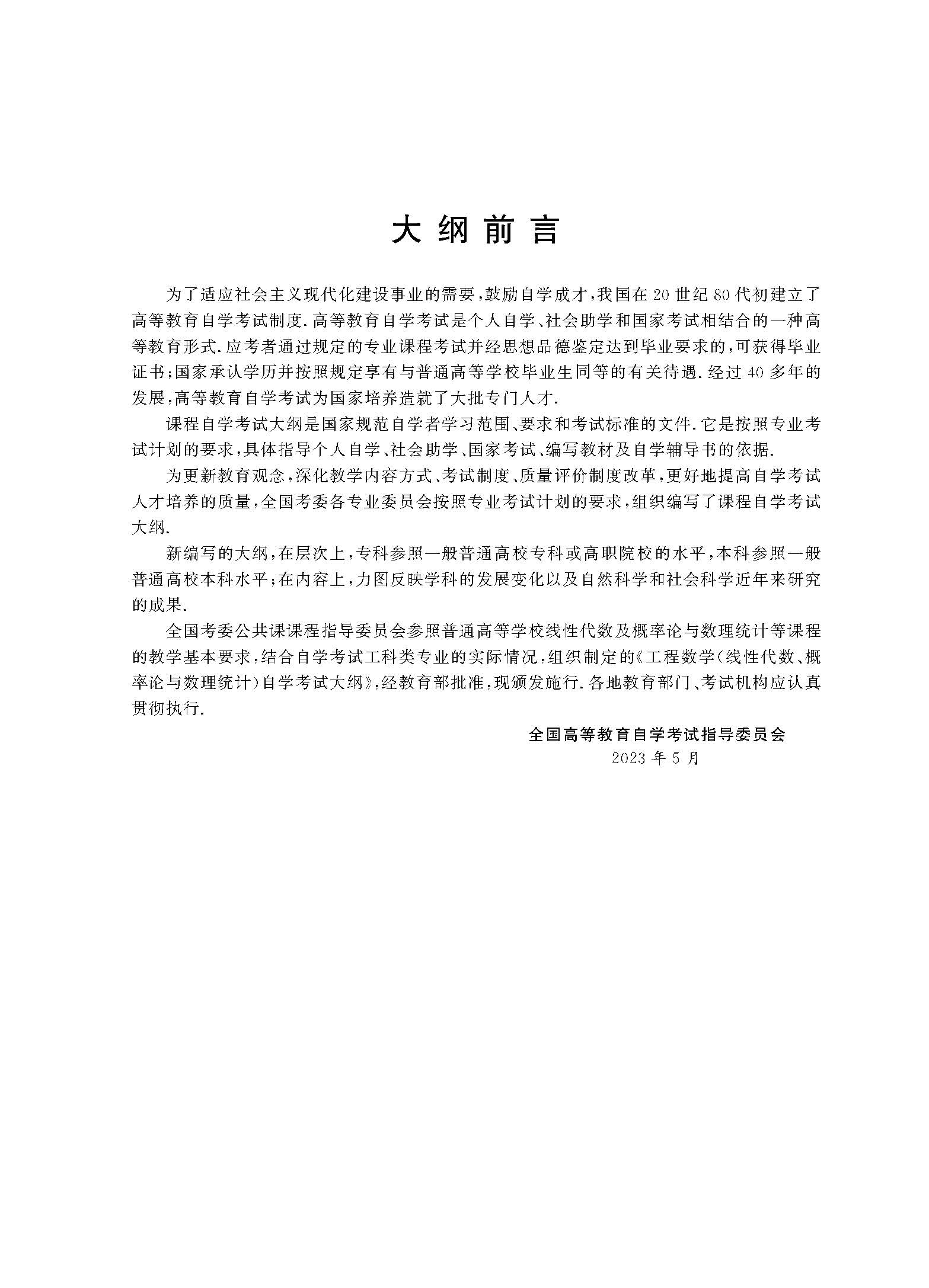2024年全国高等教育自学考试公共基础课工程数学自学考试大纲