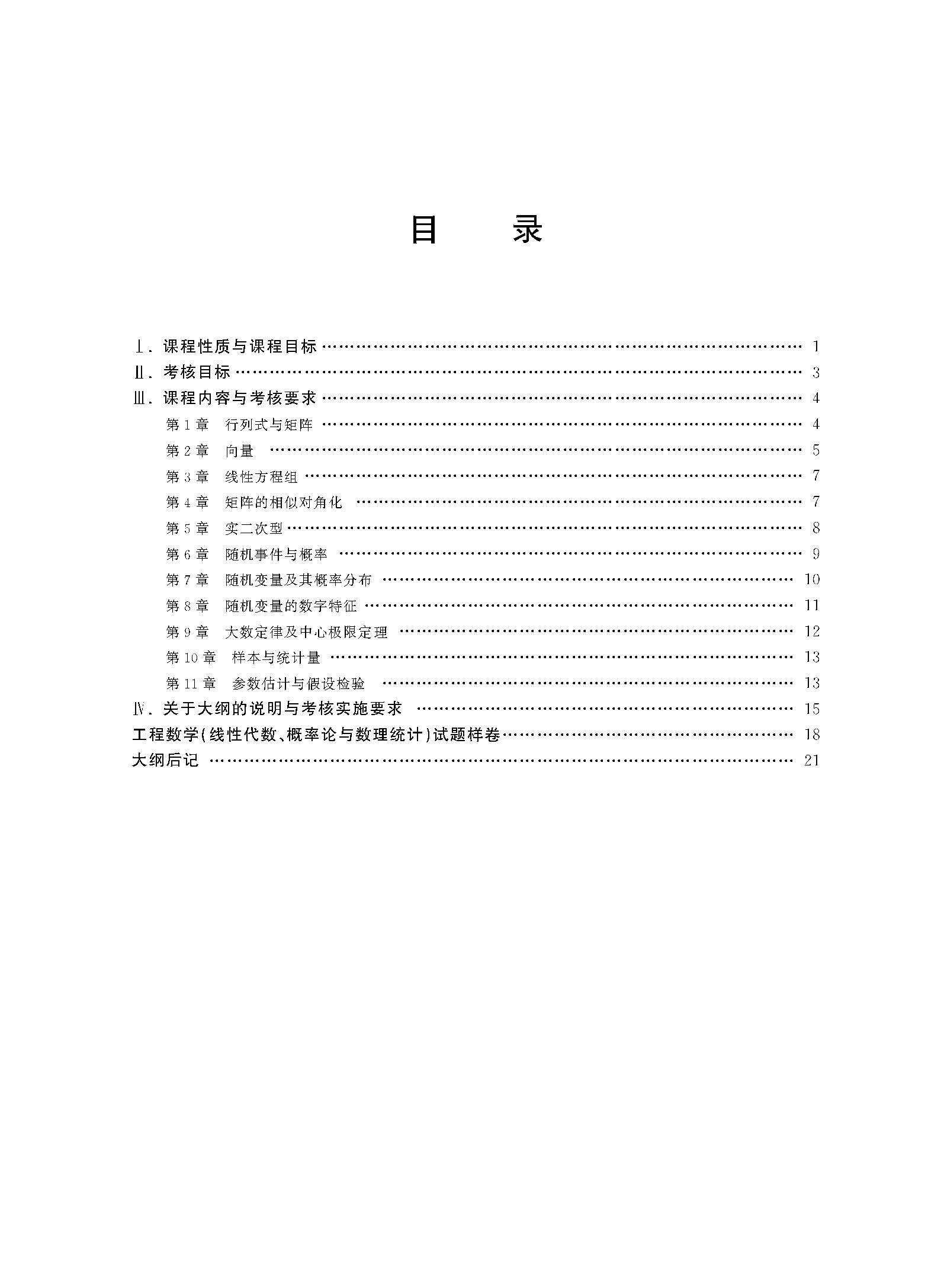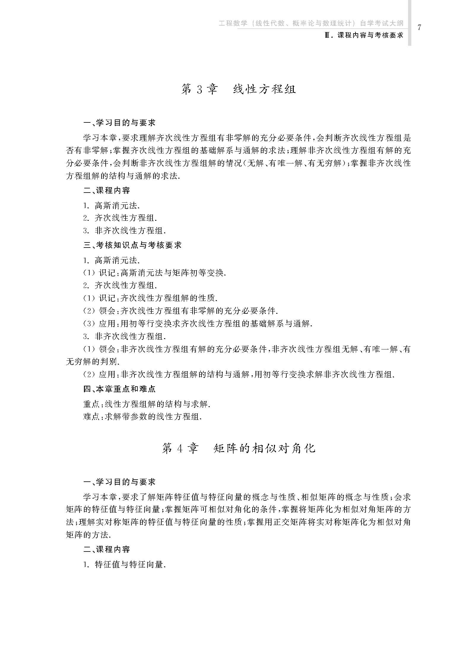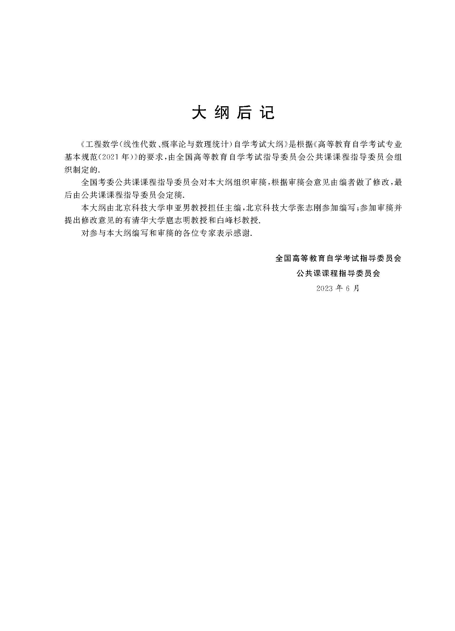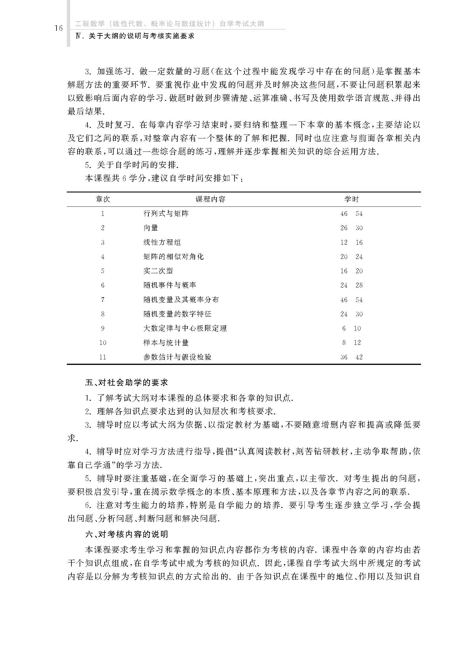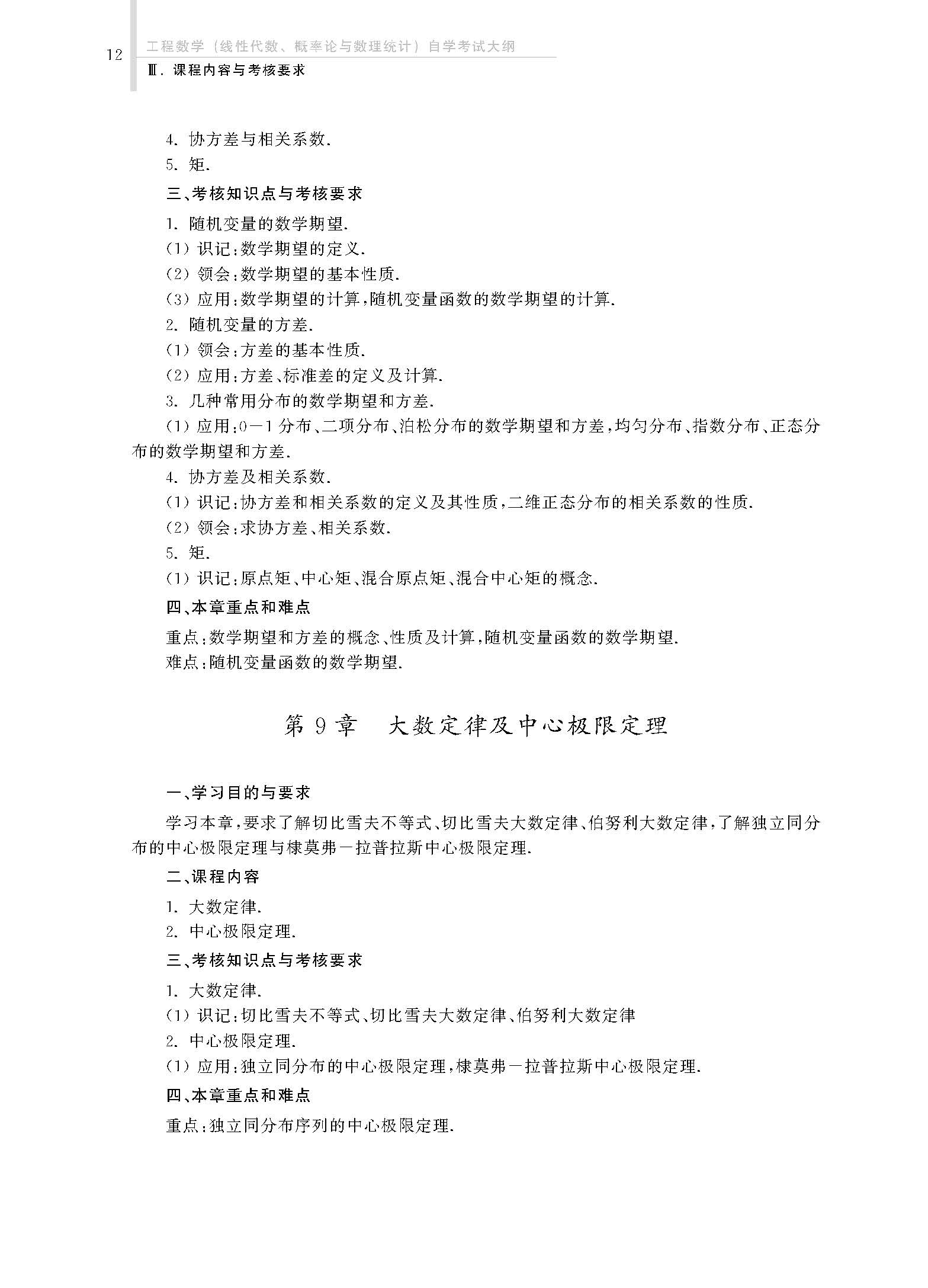 2024年全国高等教育自学考试公共基础课工程数学自学考试大纲