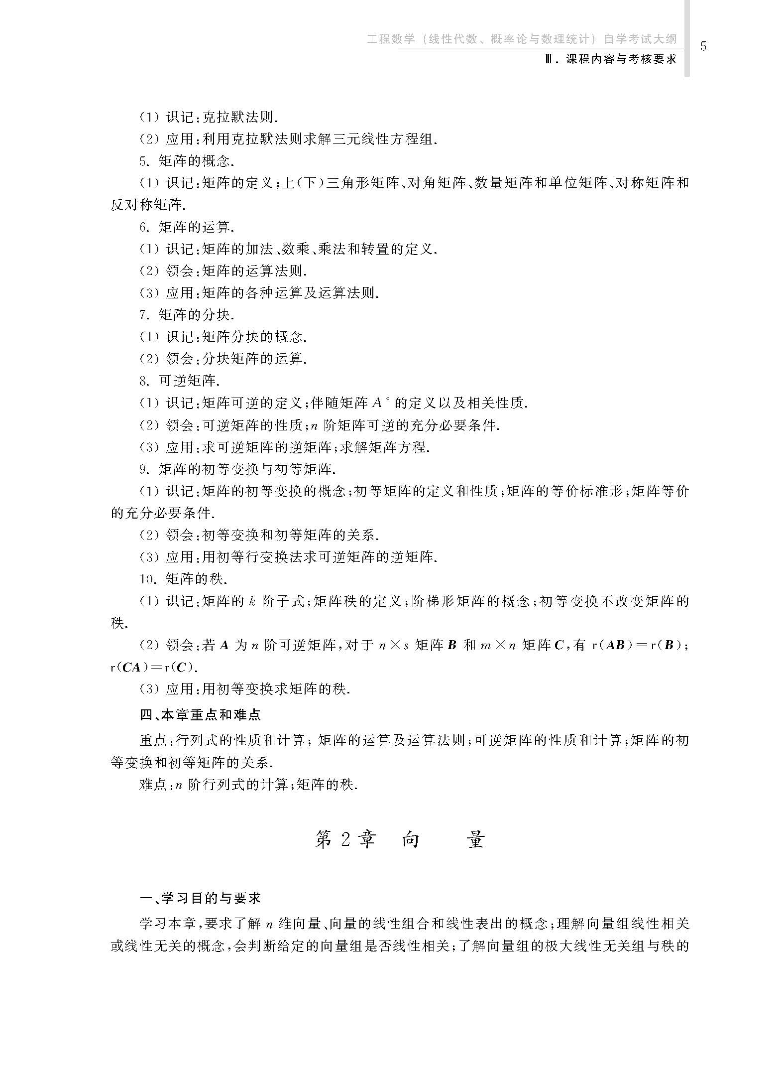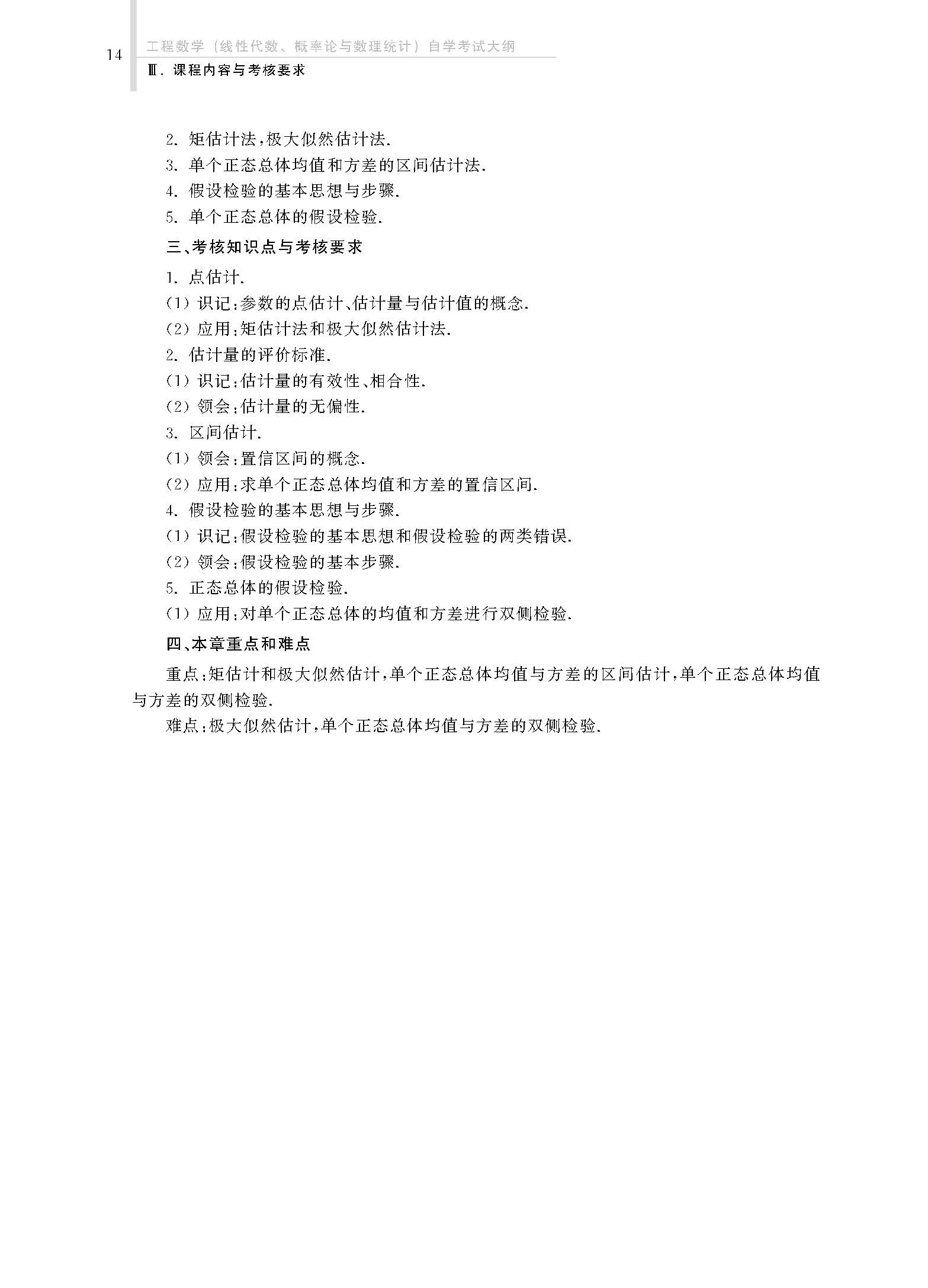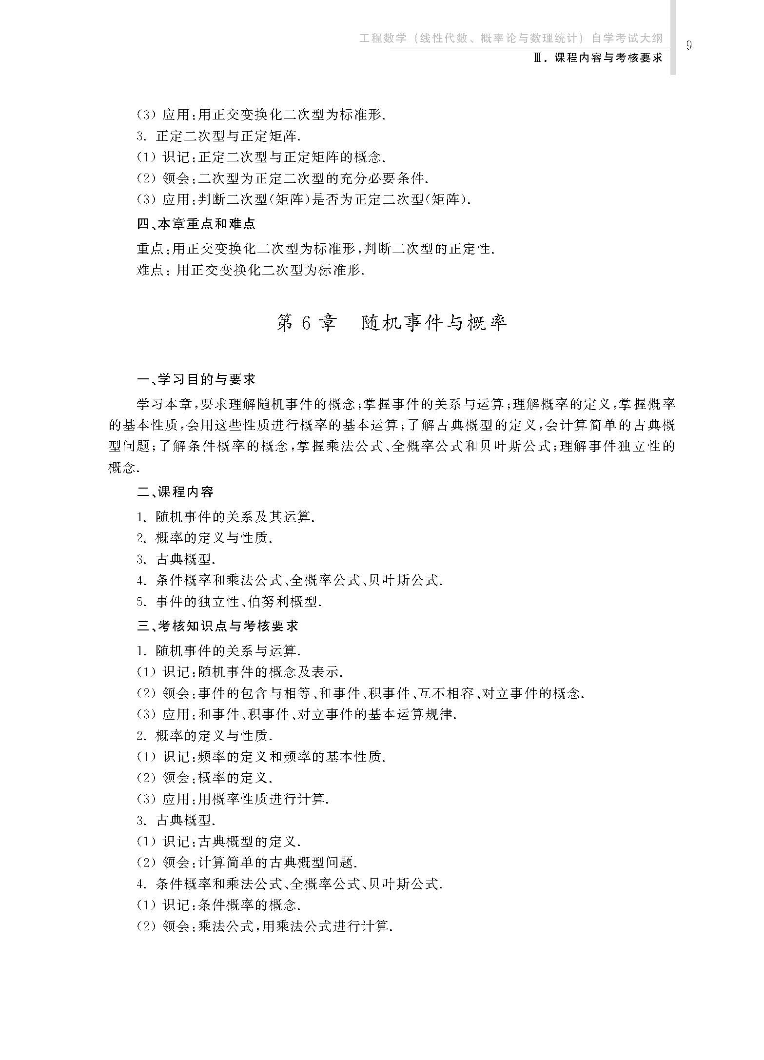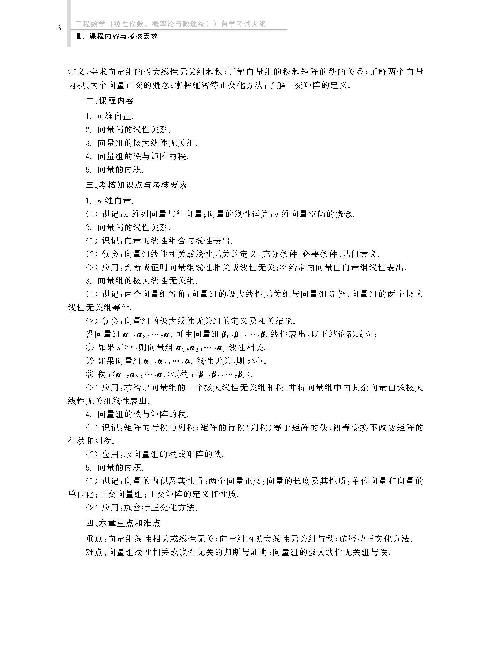 2024年全国高等教育自学考试公共基础课工程数学自学考试大纲
