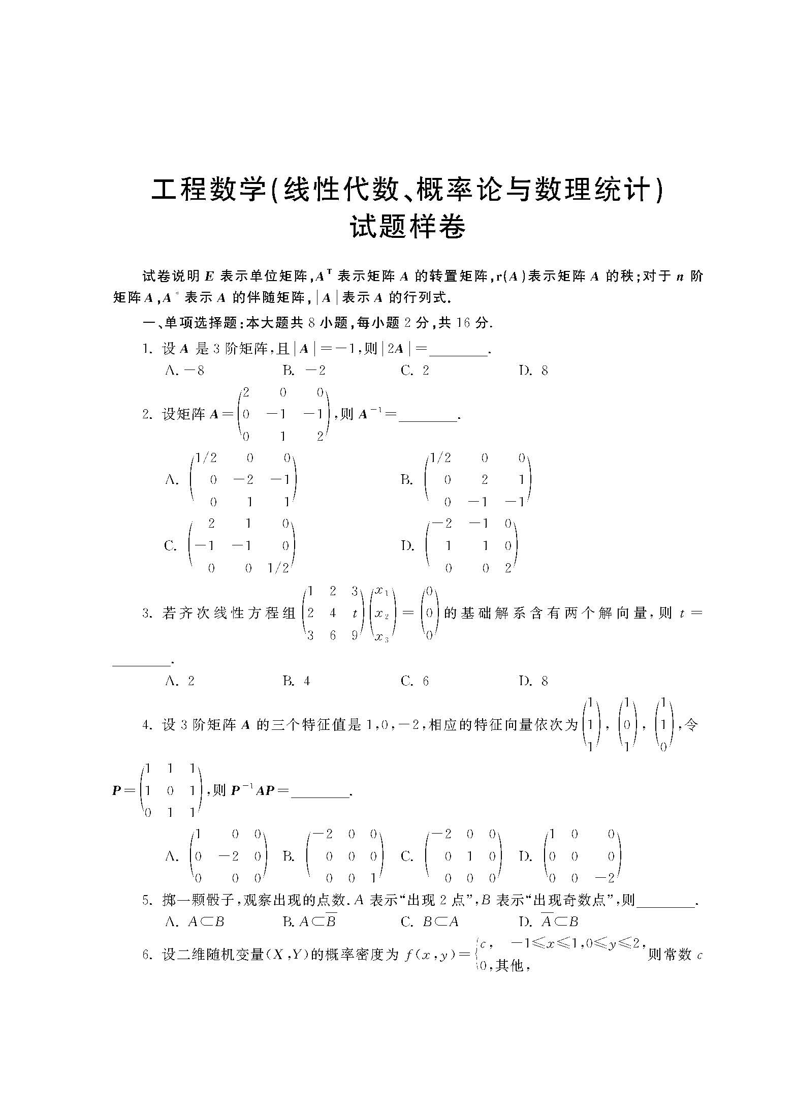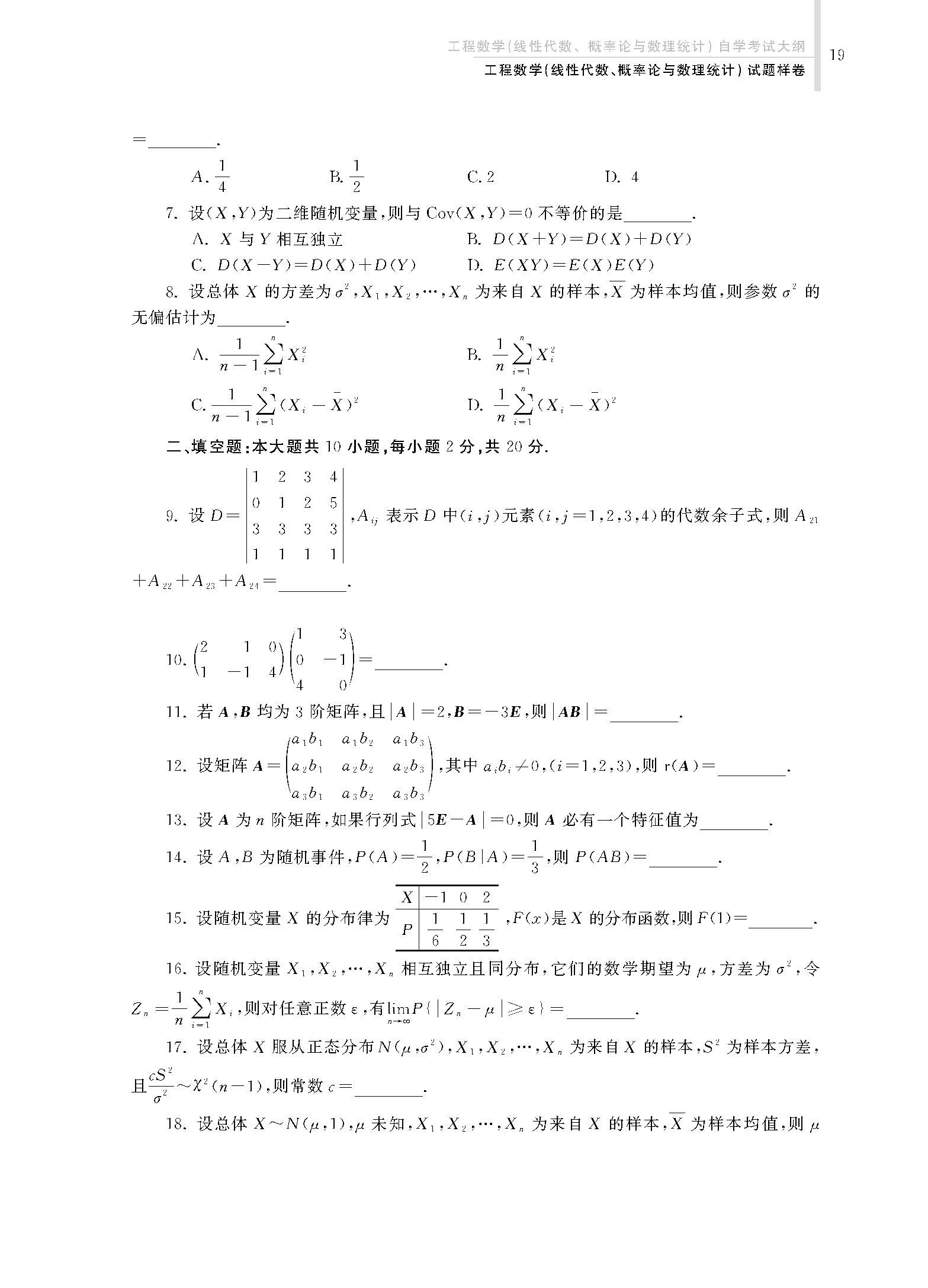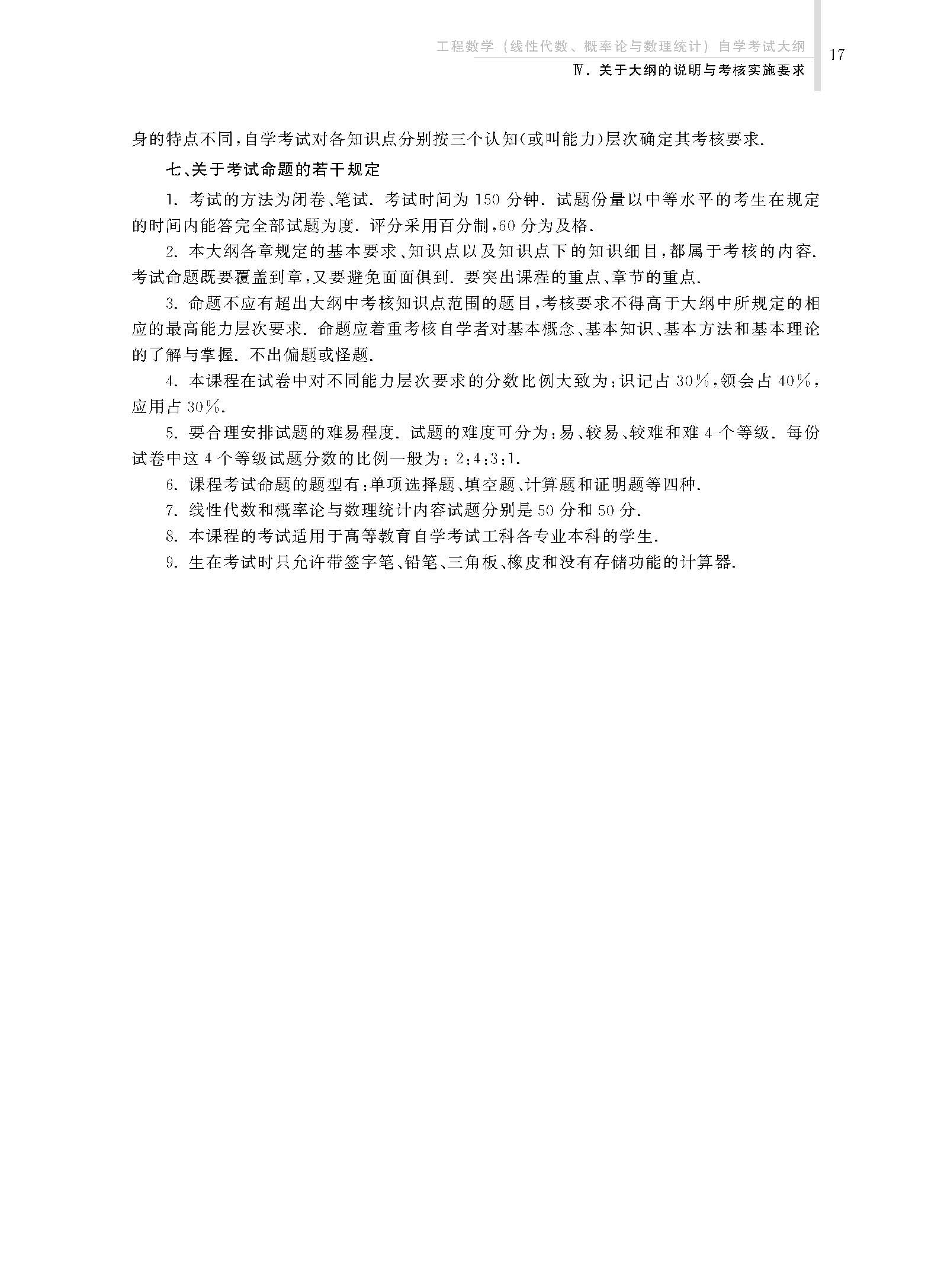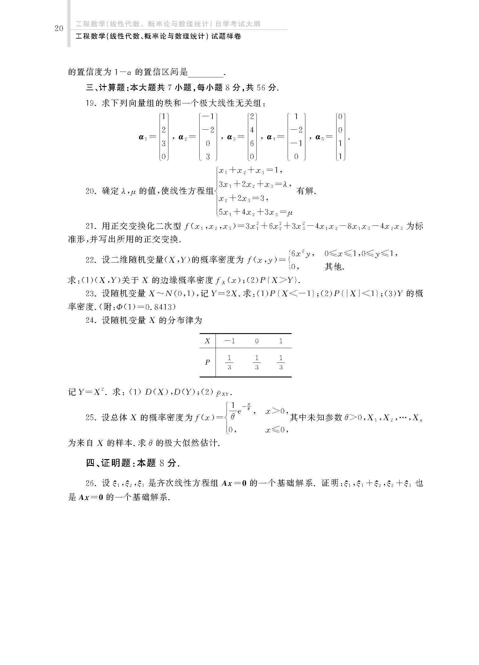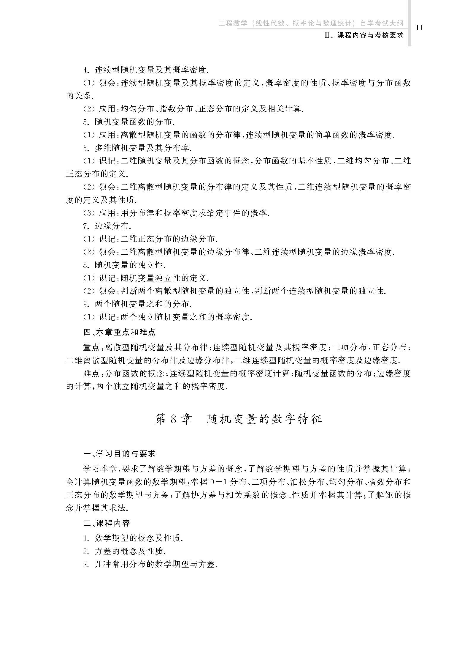 2024年全国高等教育自学考试公共基础课工程数学自学考试大纲