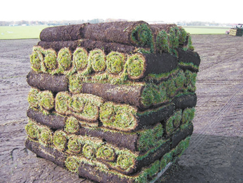 帆布覆盖草皮进行运输,防治脱水;干热天气宜在黄昏收获,夜间或早晨运输