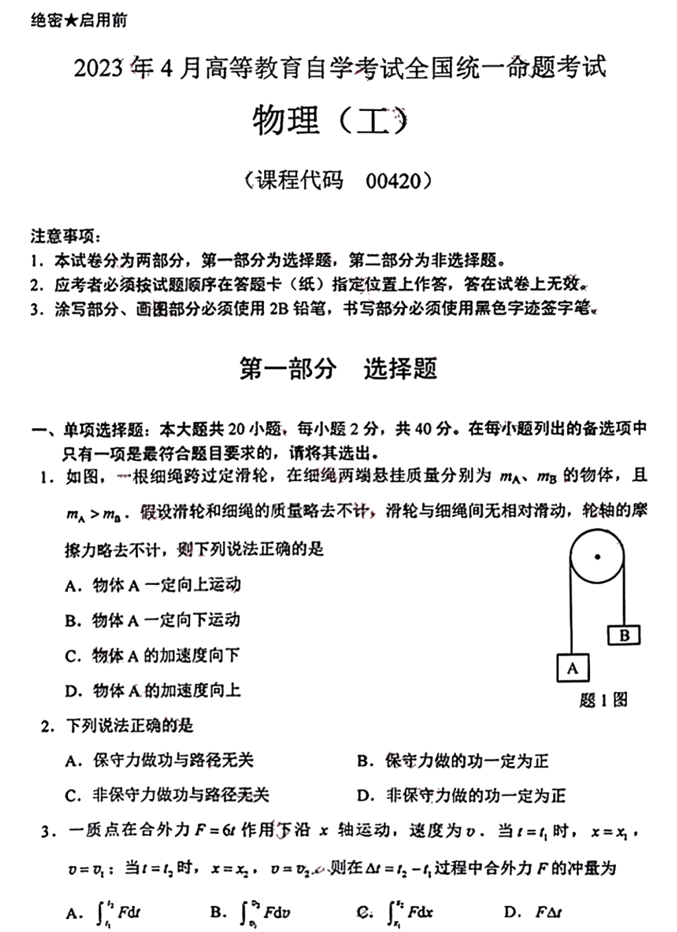 本文标签:湖南自考 湖南自考工学类 2023年4月湖南自学考试物理(工)00420真题