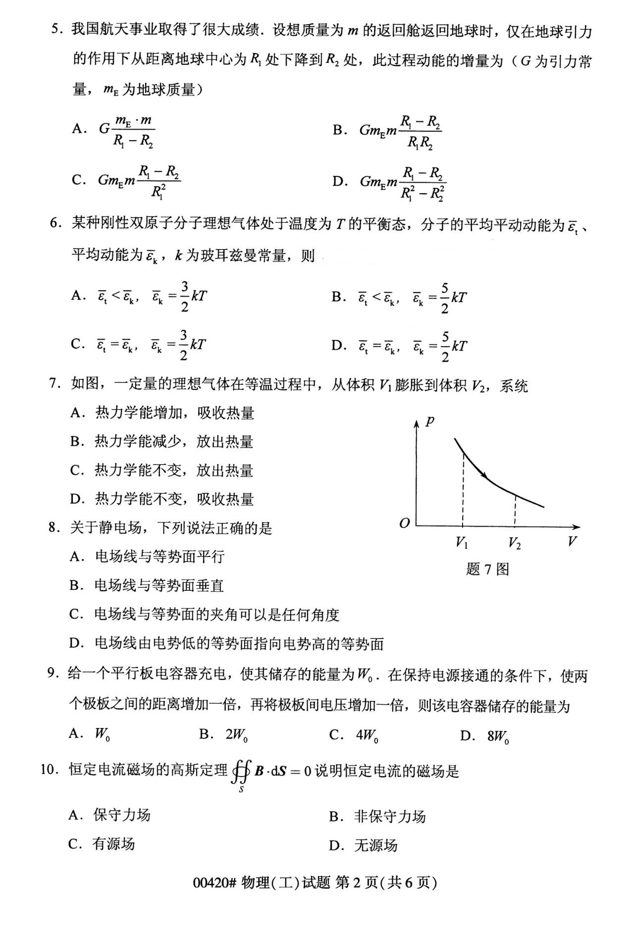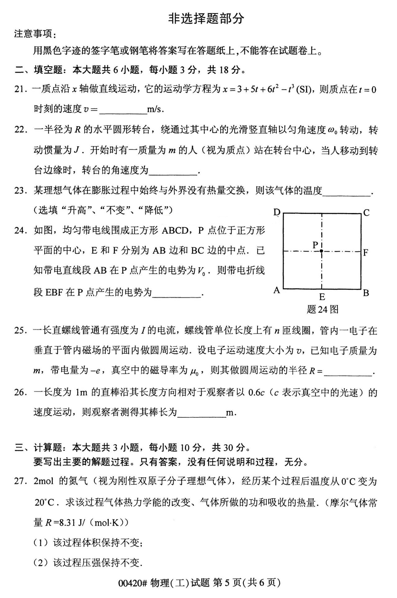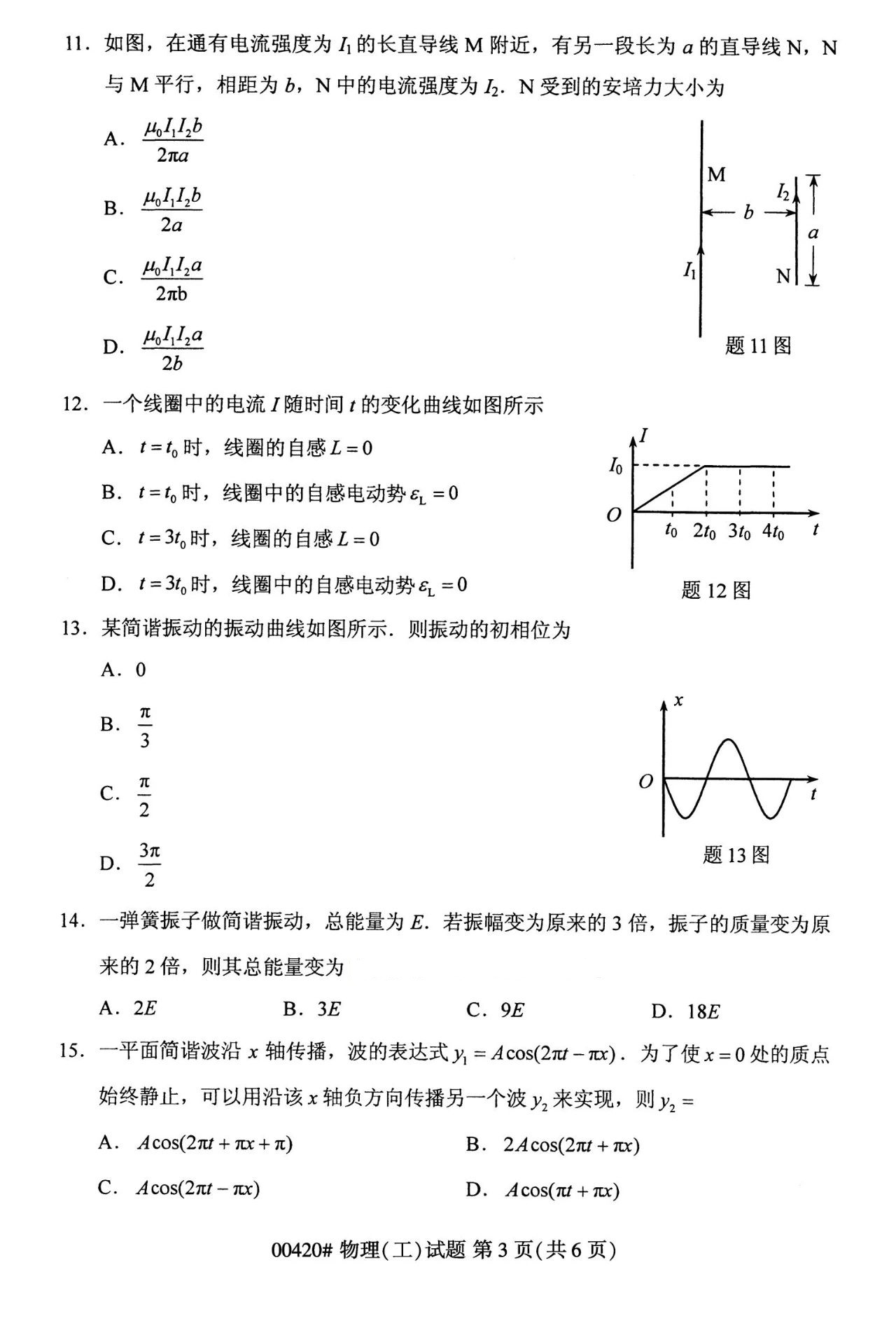 2023年10月湖南自学考试《00420物理(工)》真题