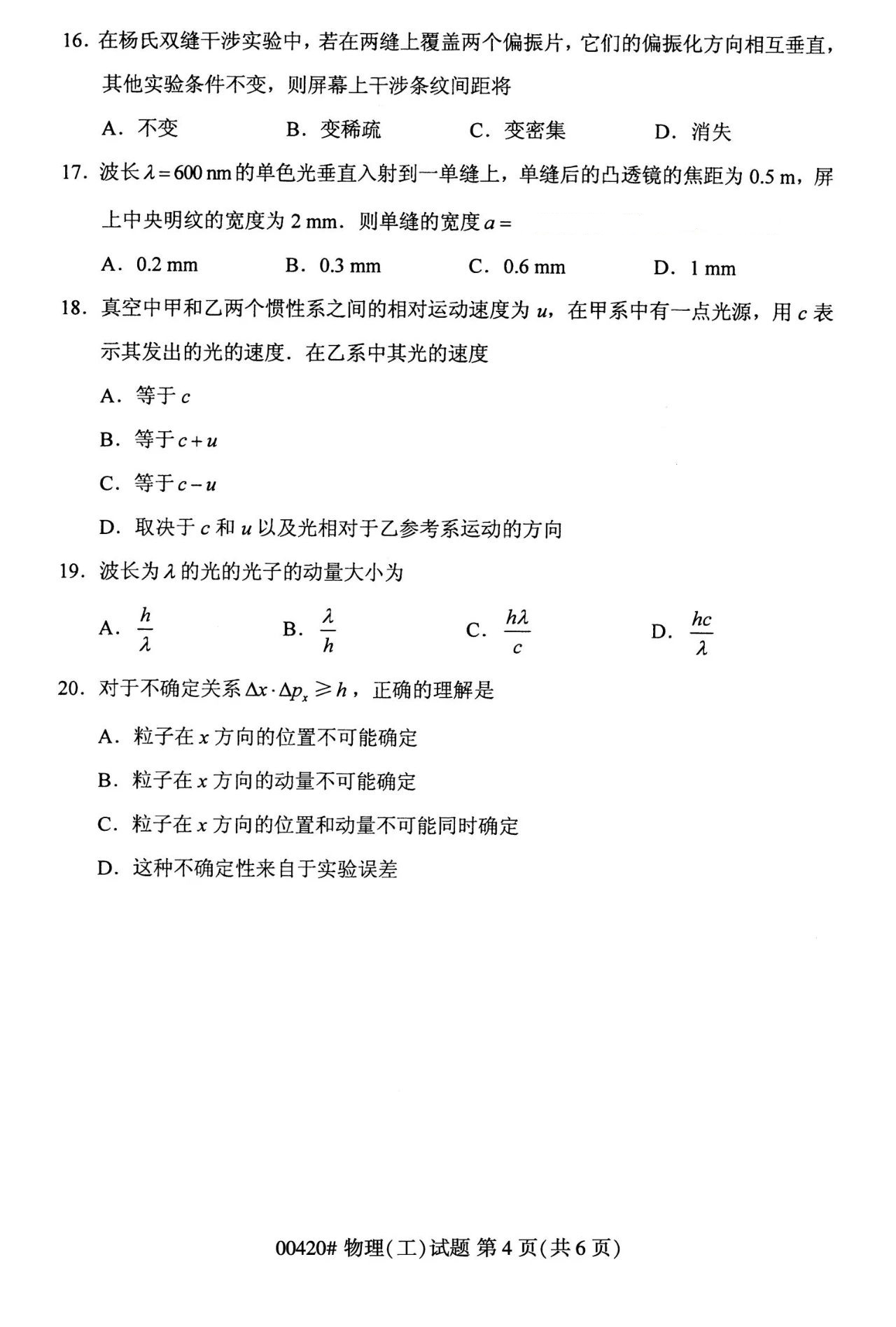 本文标签:湖南自考 湖南自考工学类 2023年10月湖南自学考试《00420物理(工)》真题