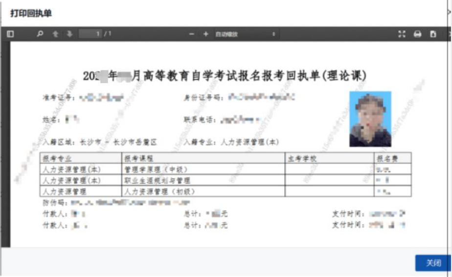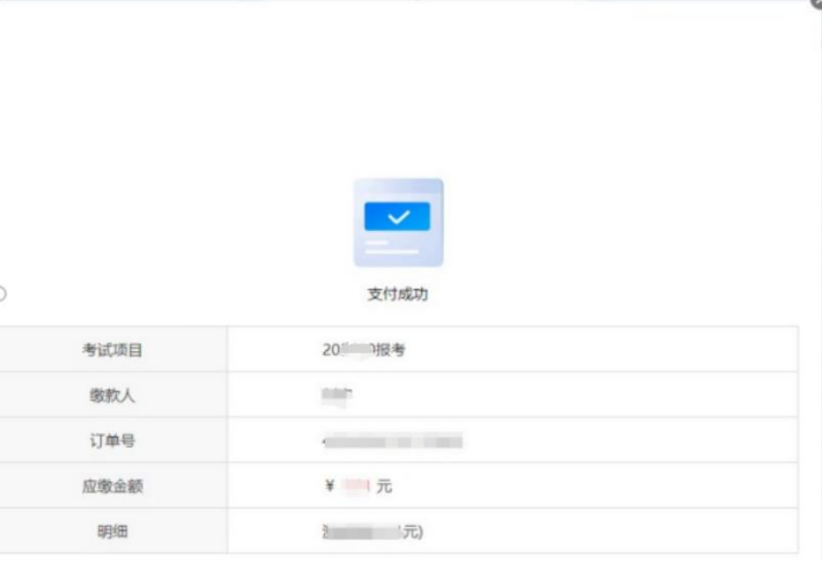 考生完成上述操作后,点击支付界面右上角“X”关闭按钮。关闭支付界面后,可返回报考系统查看本次缴费成功的报考课程信息(缴费状态为“已缴费”),如下图所示: