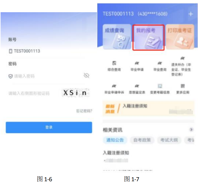 点击上图1-7,“我的报考”图标,进入报考界面(如下图1-8)。