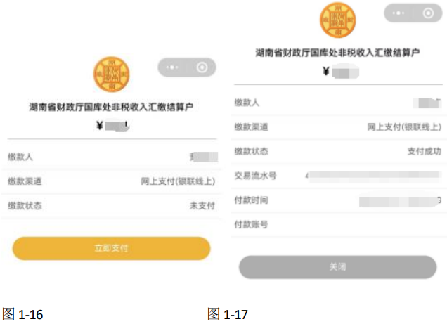 上图 1-13 界面,点击“缴费”按钮,进入图1-14 界面,请核实报考课程后点击“确认”按钮,进入图1-15界面,点击“确认支付”按钮,进入图 1-16 界面,点击“立即支付”按钮,输入支付密码完成支付后,进入图1-17 界面,显示缴费状态为“支付成功”即可点击“关闭”按钮完成支付流程。