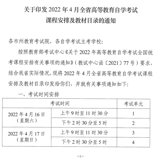 2022年4月湖南省自学考试时间