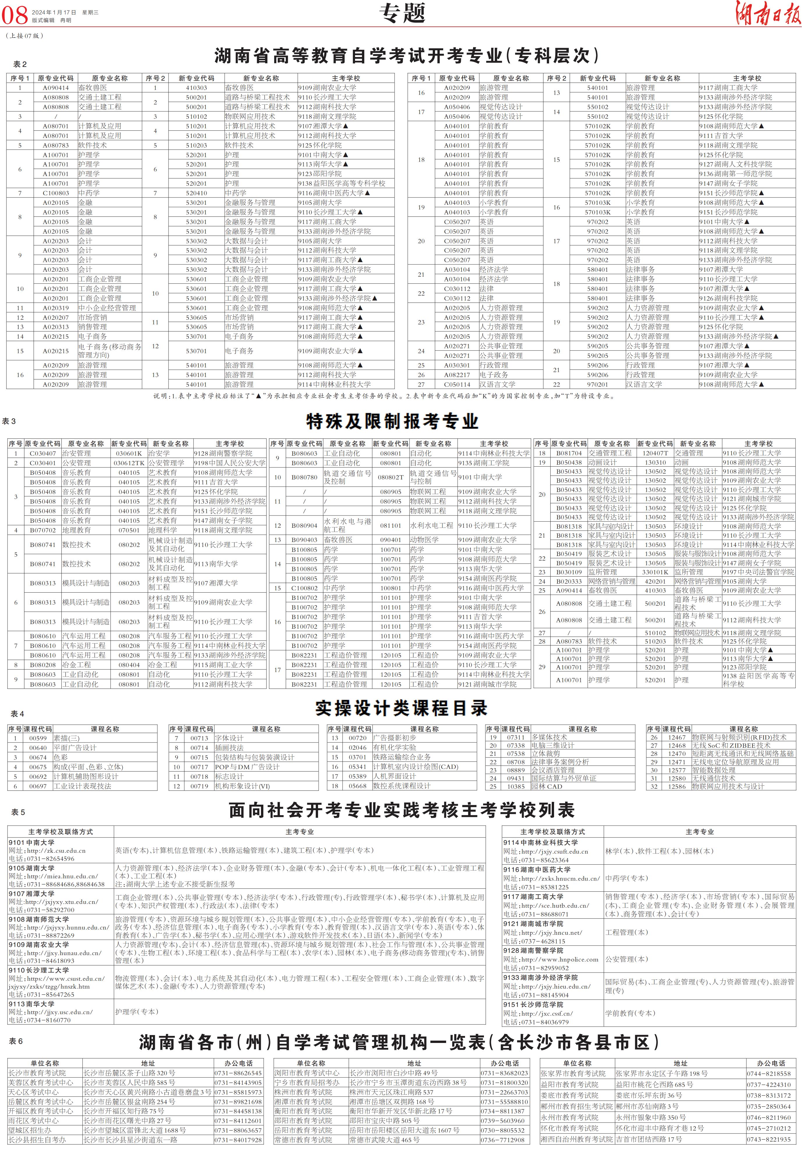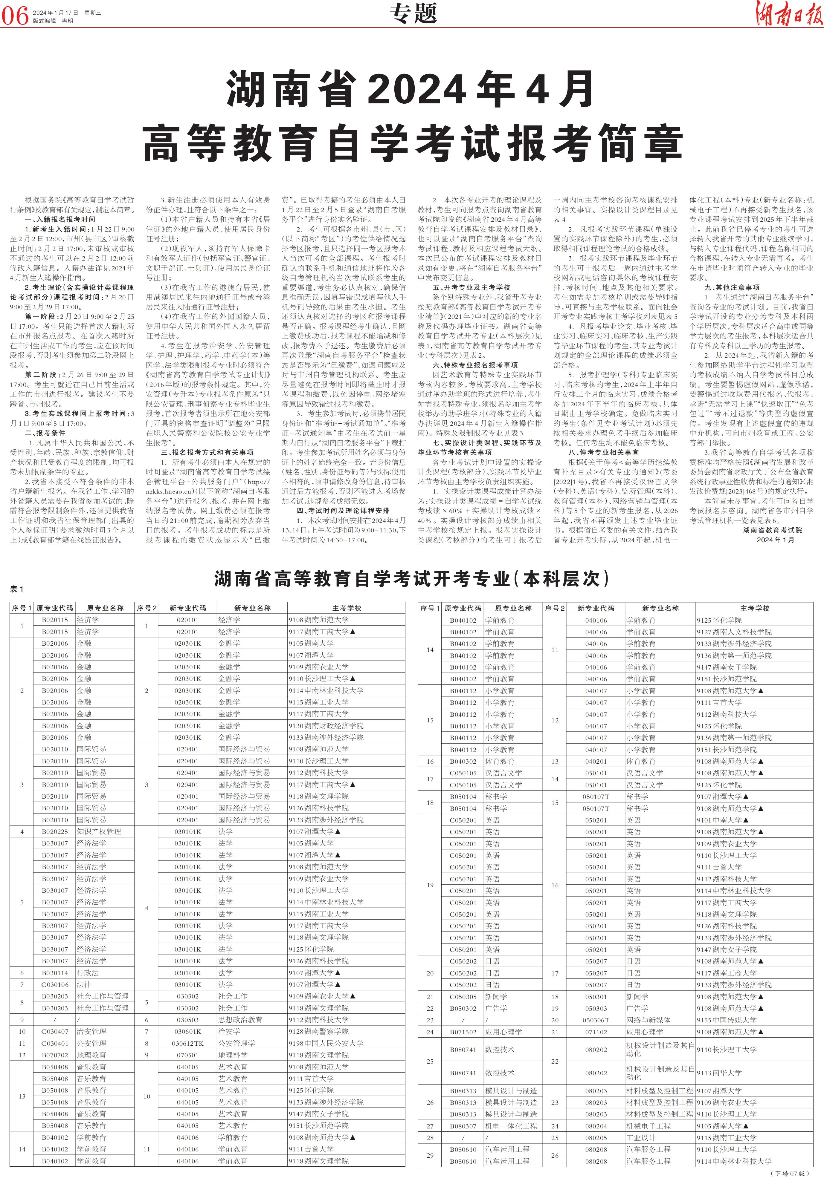 除个别特殊专业外,我省开考专业按照教育部《高等教育自学考试开考专业清单》( 2021年)中对应的新的专业名称及代码办理毕业证书。湖南省高等教育自学考试开考专业(本科层次)见表1,湖南省高等教育自学考试开考专业(专科层次)见表 2。