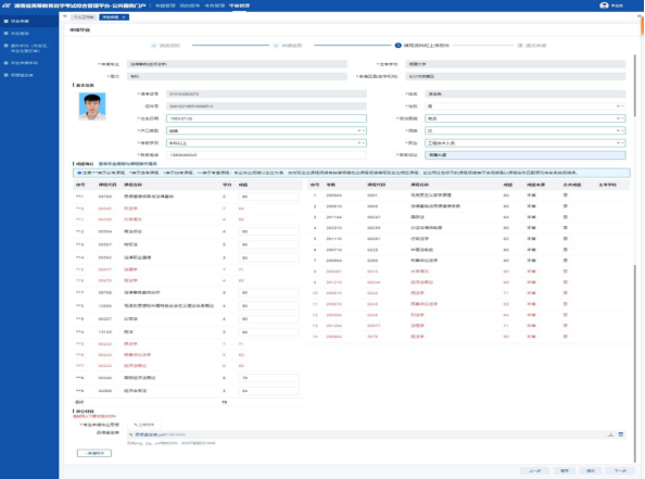 校验通过后,学信网校验结果会有反馈信息(未效验通过无反馈信息,考生需先进行毕业申请申诉),出现反馈信息后点击【下一步】按钮,进入基本信息填写界面: