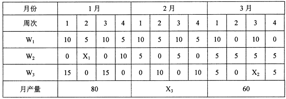 27.著名手机品牌企业甲公司,2024年第1季度计划生产W系列手机200万部。W系列产品共W1、W2、W3三个型号,现已安排了该产品2024年第1季度的部分主生产计划(如下表),请完成全部主生产计划的安排,即求出下表中X、X2、X₃的值。