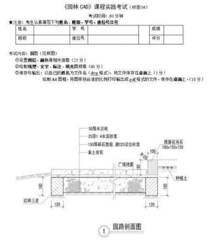 通过园林CAD图纸的实践考核,要求学生能熟悉图纸的绘制流程和制图规范。能熟练操作CAD软件,绘制园林图纸,正确表达各项设计内容。