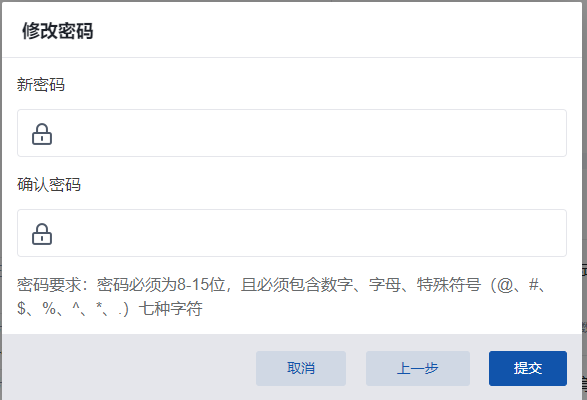 输入新密码、确认密码,点击“提交”按钮,弹出如下提示窗口