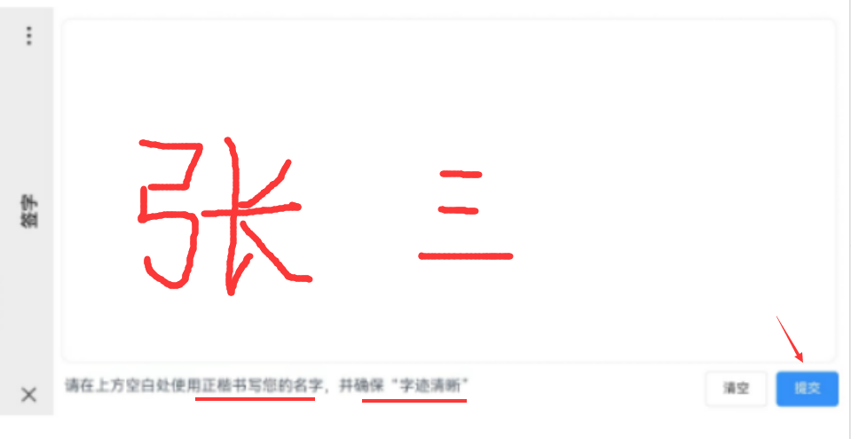 手写输入自己的名字(必须规范书写并确保字迹清晰),点击“提交”按钮弹出如下图所示窗口。