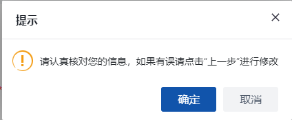 点击“确定”按钮,再点击填写资料和上传附件界面下方的“提交”按钮,弹出如下窗口。