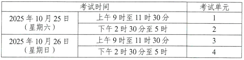 一、考试时间安排如下表