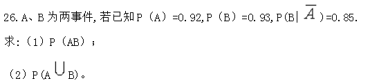 23.A与B互不相容,P(A)>0,则P(B|A)=______。