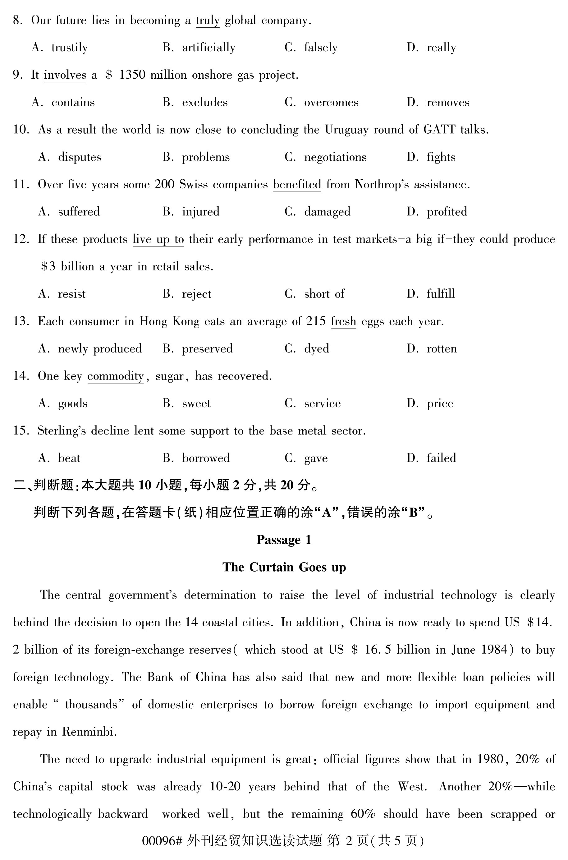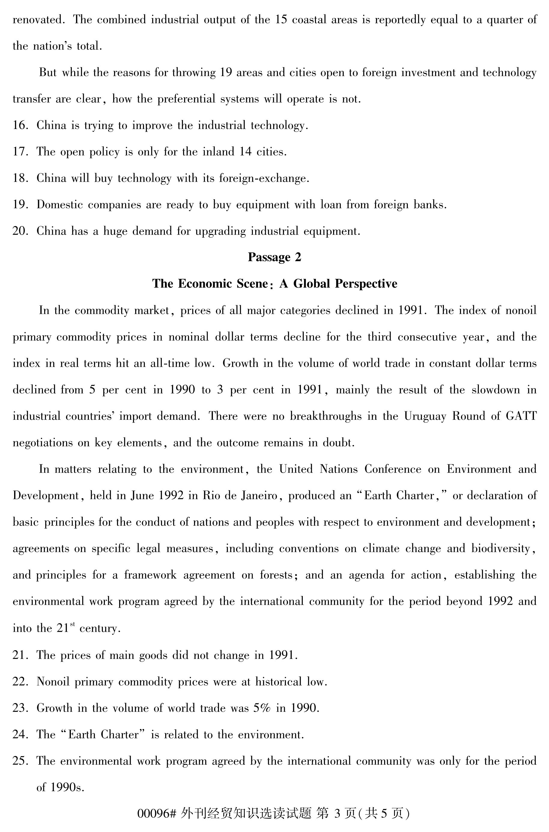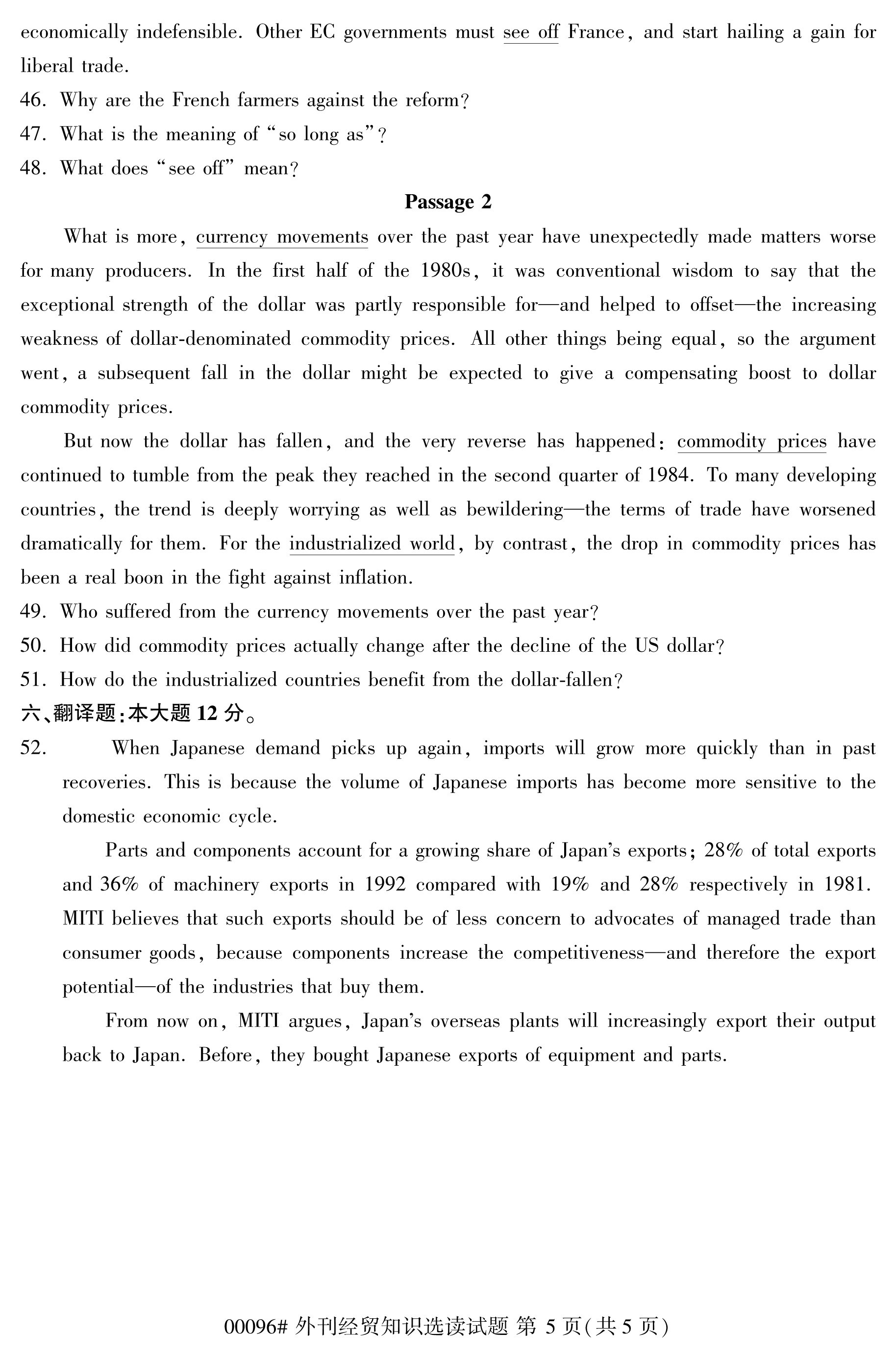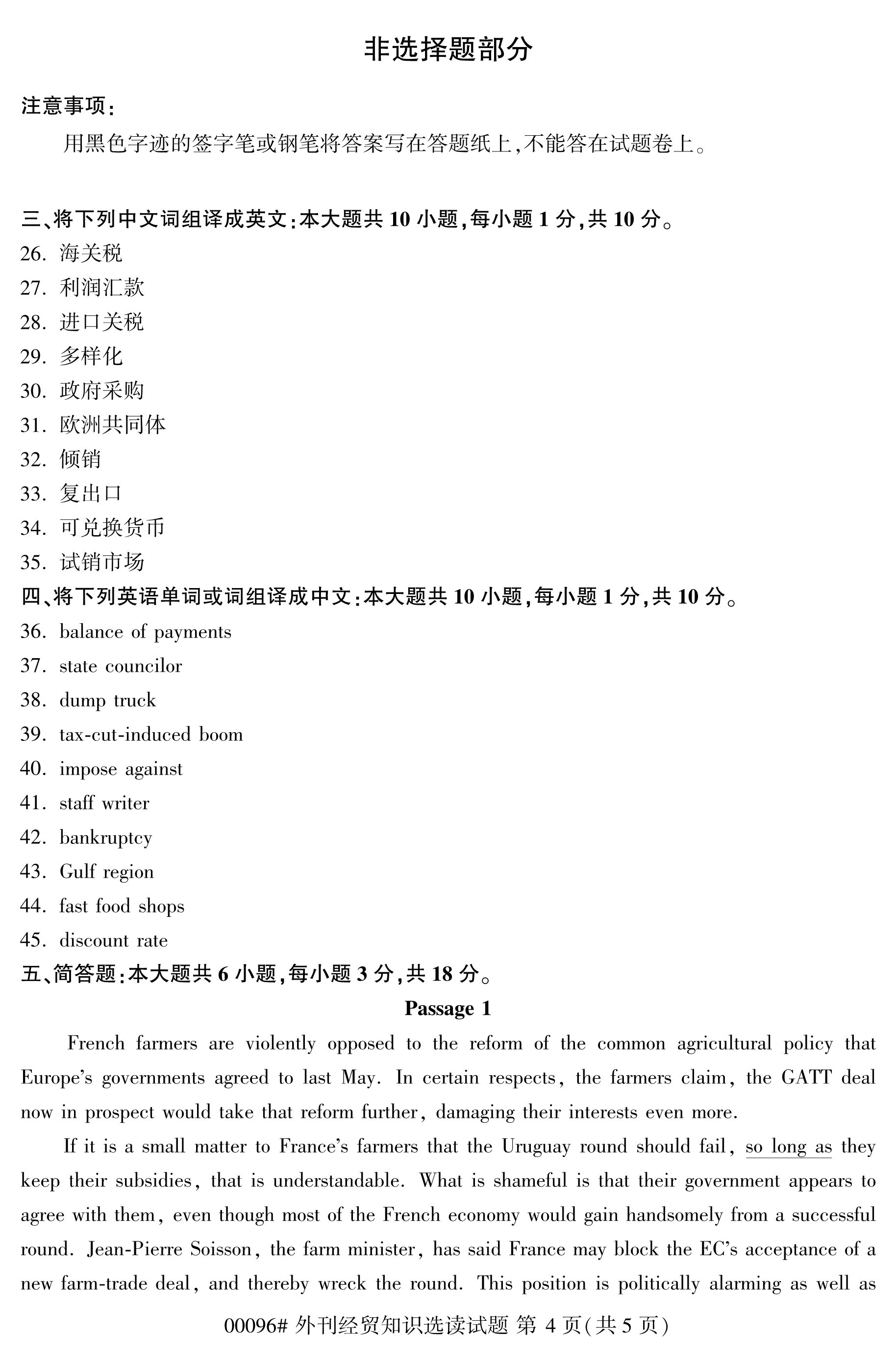 2024年4月自考《00096外刊经贸知识选读》真题试题