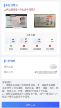 (个人中心--实名认证--认证--上传身份证正反面--点击开始认证)