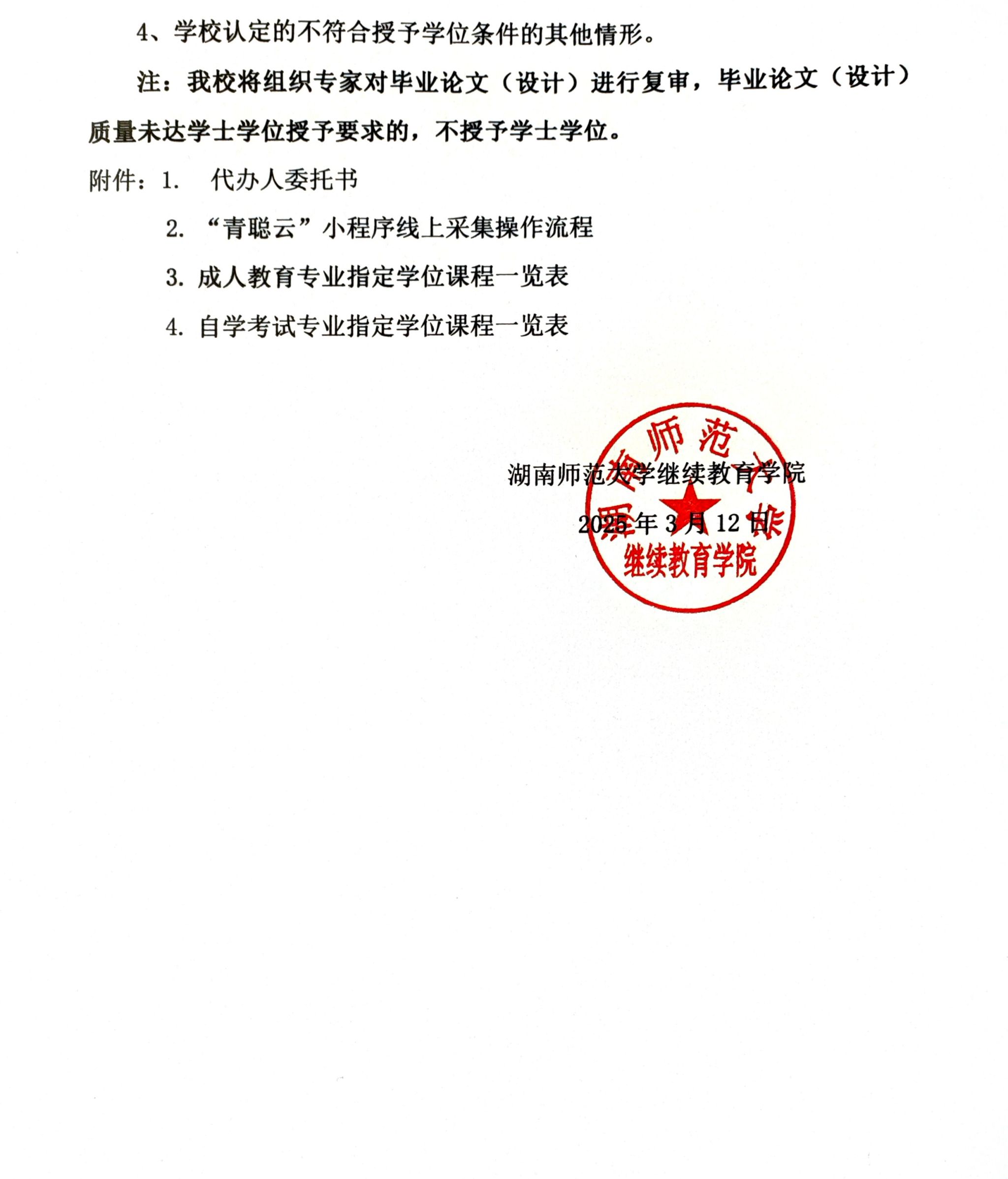 湖南师范大学2025年上半年高等学历继续教育本科学士学位申请与授予工作的通知