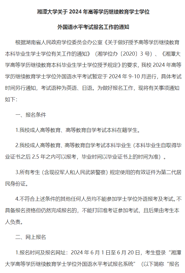 最新长沙医学院2025年上半年高等学历继续教育学士学位外语水平考试报名的通知