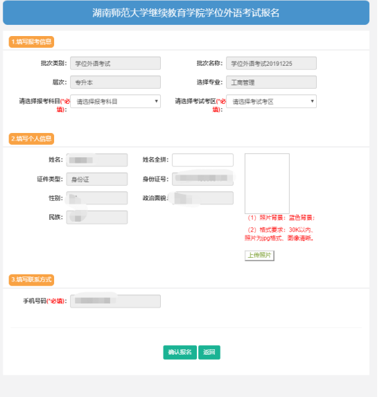 湖南师范大学高等学历继续教育本科生学学士位外语水平考试报名流程