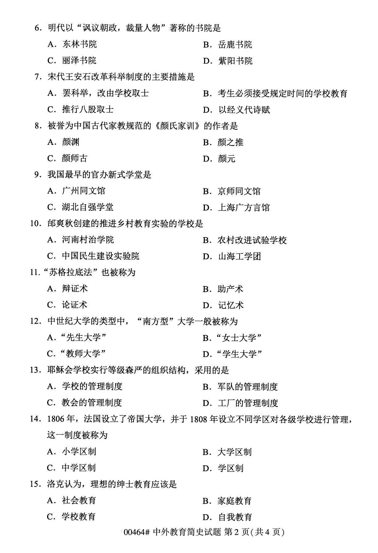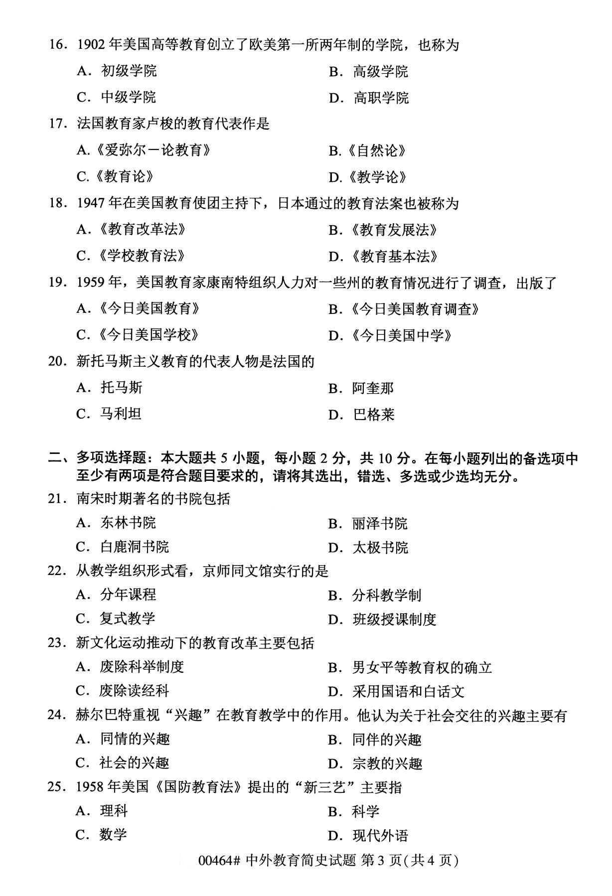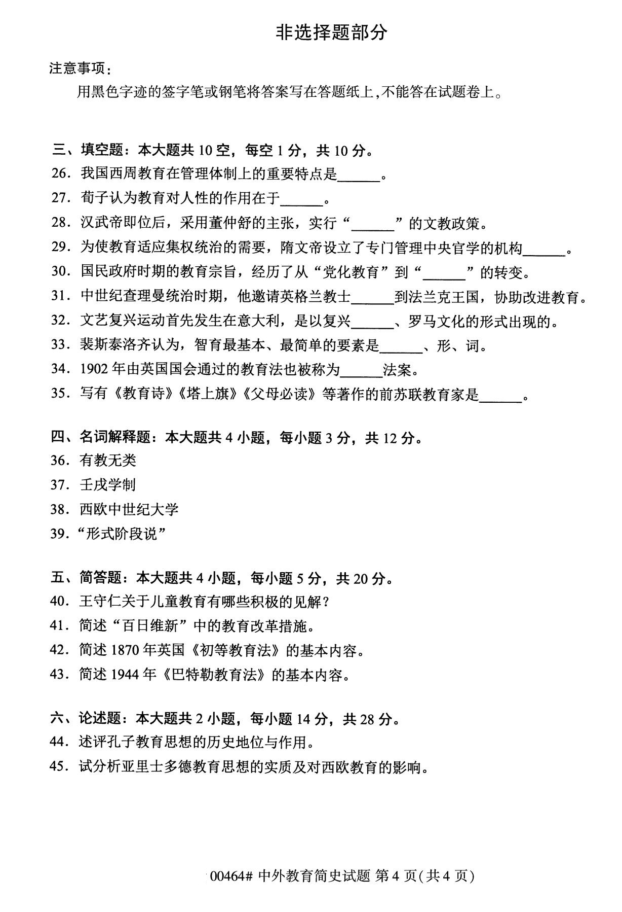 2020年8月湖南省自学考试本科00464中外教育简史真题