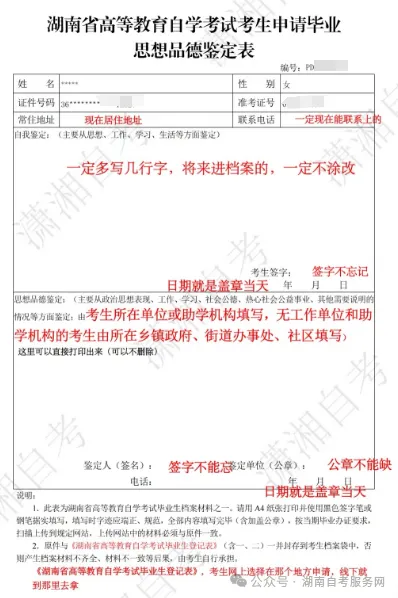 2025年上半年湖南自考毕业申请思想品德鉴定表如何下载?如何填写?
